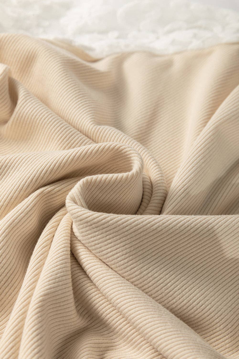 Beige Floral Lace Patchwork Long Sleeve High Neck Slim Top